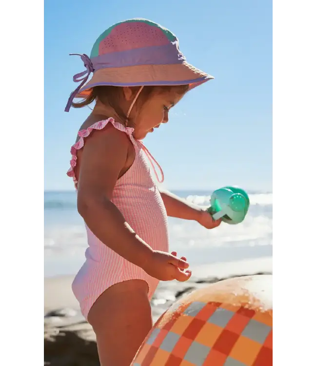 Dipped in delicious ice-creamy tones, this hat is made from a lightweight, splashproof nylon that dries in a flash after every dip. It’s incredibly soft and packable, making it a breeze to stuff into a beach bag or pocket without losing its shape, and features a secure adjustable toggle to keep it snug during every poolside mission.