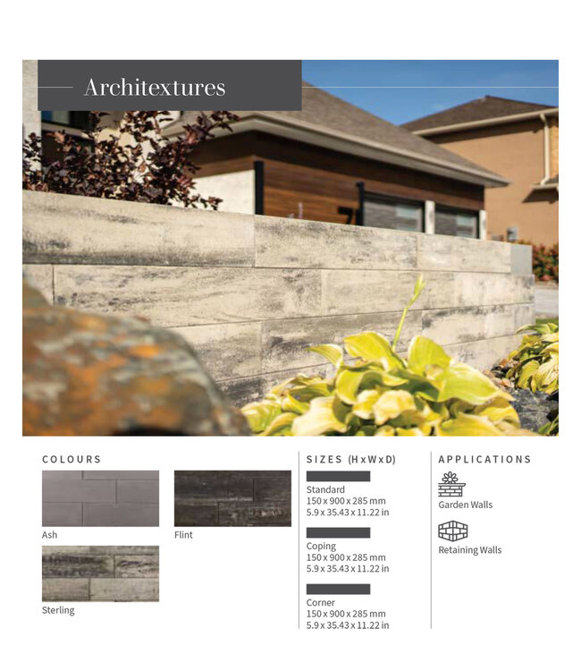 Architextures™ is the latest large format, contemporary retaining wall from Barkman. It’s built to handle the most demanding landscaping challenges, and designed to fit seamlessly in the most modern of spaces.
