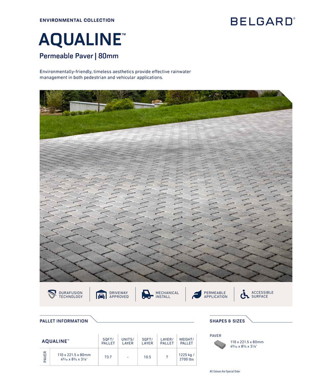 Aqualine™ permeable pavers work equally well for pedestrian and vehicular applications. Featuring a smooth surface and a wide variety of color options for the ultimate in design flexibility.