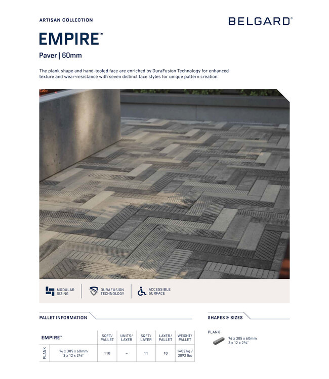 The plank shape and hand-tooled face are enriched by DuraFusion Technology for enhanced texture and wear resistance with seven distinct face styles for unique pattern creation.