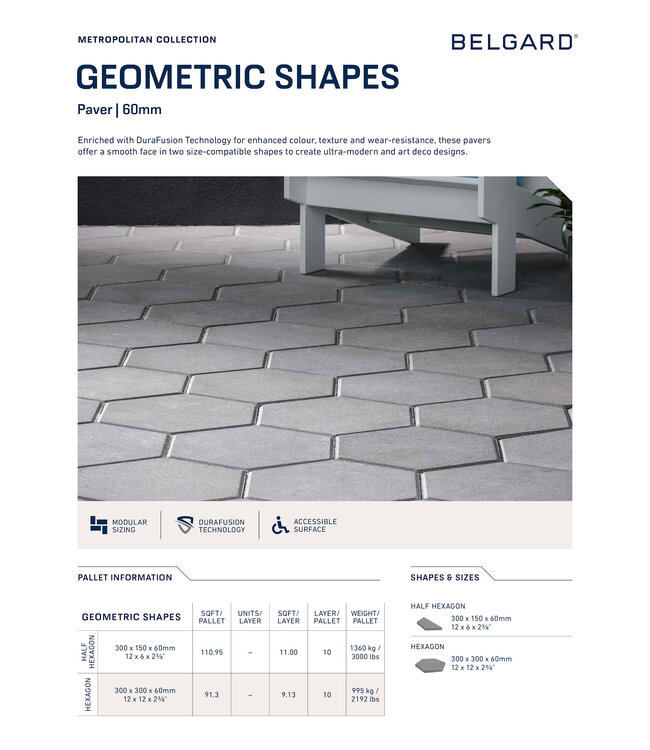 Hexagon pavers can be used alone or easily combined with Origins™ or Dimensions™ paver lines to add visually interesting borders, accents or inlays.