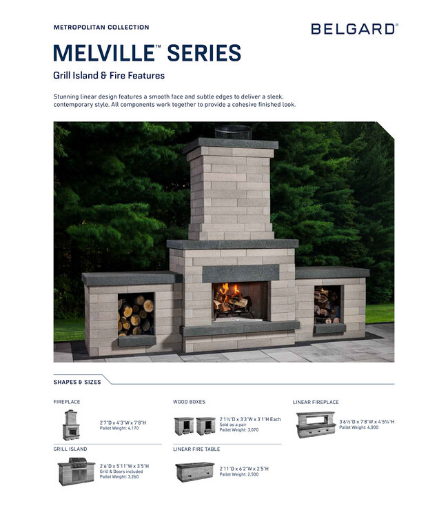 Belgard Melville Fireplace (Base & Top) Scandina Grey / Midnight Wood Burning (Special Order)