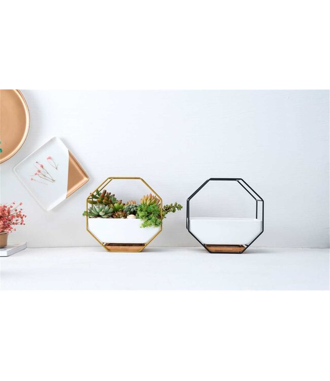 Wall mountable ceramic planter with Black stand and bamboo base.