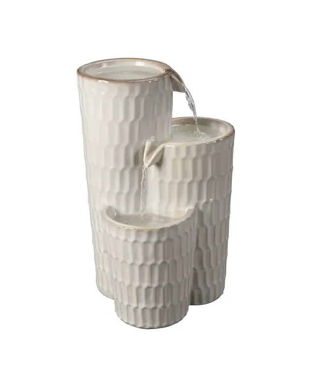 . This fountain, free from lights, focuses on the pure beauty of ceramic craftsmanship and the efficiency of a centrifugal pump. With an AC power source and easy assembly, create a tranquil outdoor sanctuary with the soothing sounds of cascading water.