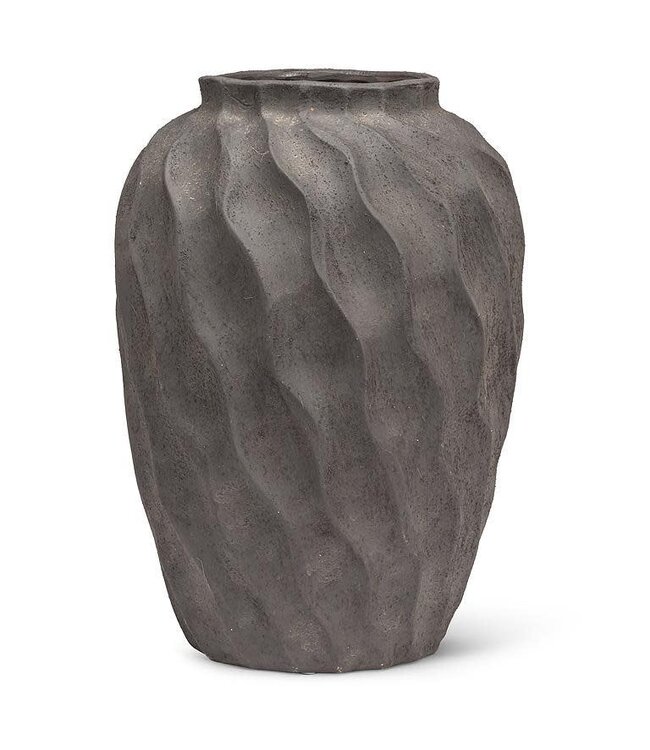 This dark grey cement urn vase combines classical form with a tactile finish. Designed for statement-making arrangements or as a sculptural object, it lends gravitas to modern and traditional spaces alike.