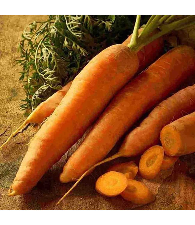Roots are sweet and tender yet incredibly crisp. Bright orange in color and nearly coreless, these are ideal for freezing. Please Note: Seed tapes require consistent moisture to ensure best germination. Latin Name: Daucus carota subsp. Sativus Seed Type: Heirloom Online Code: 139826 Product Weight: 4.5 meters (15') - with 500 plus seeds Plant Type: Vegetable Flavor: Sweet and crunchy Days to Harvest: 68 days Days to Seed Germination: 10 to 14 days Seed Planting Depth: 6 mm (1/4") Row Spacing: 30 cm (12") Plant Spacing: 5 cm (2") Planting Instructions: Prepare the soil for planting. Make shallow rows 13 mm (1/2") deep and 45 cm (18") apart. Tear strips apart and unroll into rows. Water the Seedtape thoroughly, then cover with soil and water thoroughly again. Please note, Seedtapes require consistent moisture to ensure best germination. Uniform soil moisture is critical. Plant in fertile well drained soil. Repeat sowings every 2 weeks until mid-summer for continuous supply of fresh carrots. Suggestions: For best flavor, harvest when roots are not more than 5 cm (2") in diameter. Preparation Ideas: Clean, peel and slice carrots. Bring 3 cm (1") of salted water to boil in a saucepan. Add the carrot slices. Return to boil, then reduce the heat and cover the pan. Cook until just tender, but not soft. This will take about 10-15 minutes. Drain and eat hot. For extra flavor add salt, pepper and butter.