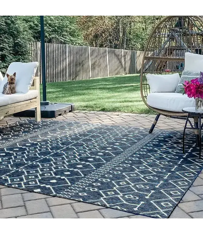 Review Well Woven Nord Moroccan Tribal Indoor Outdoor Blue Flatweave Rug 6'7" x 9'3"