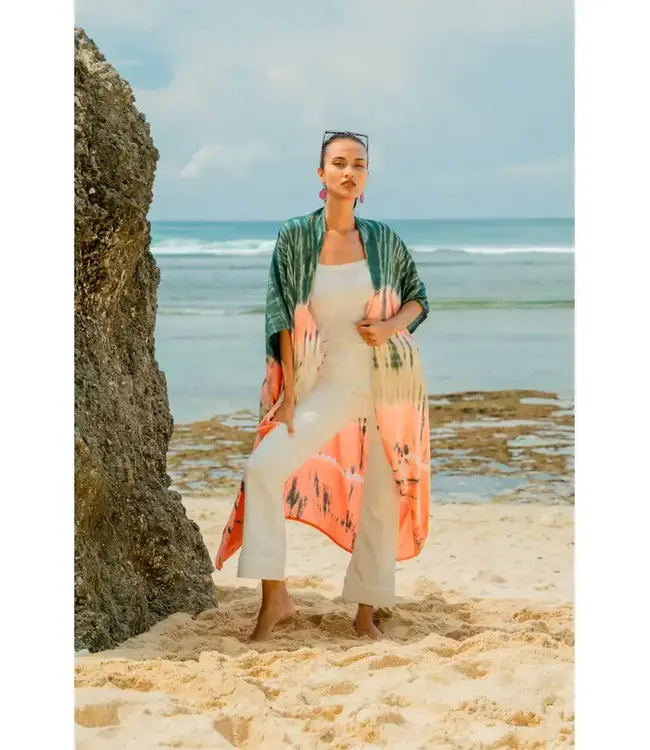 Tie Dye Stripe Long Kimono- Pink & Grey