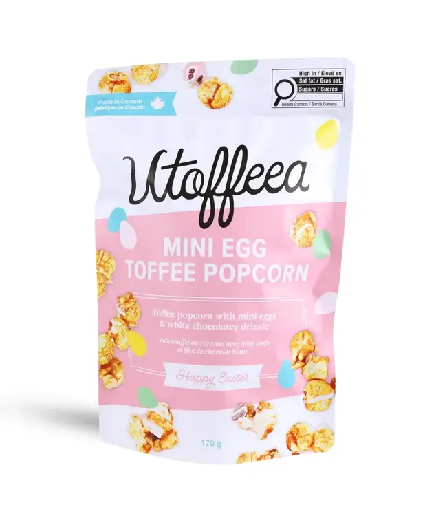 Our signature toffee poured over crunchy air popped popcorn, topped with white chocolate drizzle, and sprinkled with Mini Eggs! The Easter Bunny goes crazy for this popcorn.